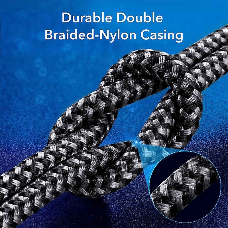 ۳. مقاومت بالا در برابر سایش: پوشش نایلونی تابیده و محکم این کابل، منجر به کمتر گره خوردن و مقاومت بیشتری نسبت به کابلهای رسمی اپل میشود. سرهای پلاگ کاملاً آلومینیومی نیز مطمئن میشوند که کابل شما هنگام وصل و جدا شدن آسیب نمیبیند.