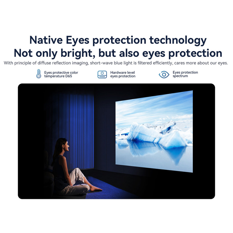 پروژکتور شیاومی دارای نسبت پرتاب 1.2:1 است. در واقع مسئله دیگری که در پروژکتورها مورد اهمیت است، میزان فاصله پرتاب نور است. در واقع این مورد که با نام نسبت پرتاب شناخته می شود به شما کمک می کند متوجه شوید از چه فاصله ای، تصویر را در چه سایزی دریافت می کنید. با توجه به نسبت پرتاب تصویر در پروژکتور شیائومی Xiaomi 4K Projector می‌توان گفت که روی صفحه‌ای که بین 40 تا 100 اینچ بهترین تصویر را دریافت خواهید کرد. در واق برای پرده های 40 اینچی در فاصله 1.5 متری و روی پرده های 100 اینچی در فاصله 2.6 متری می‌توانید پروژکتور را قرار دهید. برخلاف تلویزیون‌های LCD که در هنگام تماشای فیلم نور مستقیما به چشم شما وارد می‌شود، پروژکتورها از بازتاب نور استفاده میکنند. این فناوری کمک می‌کند تا آسیب کمتری به چشم کودکان و افراد سالمند وارد شود.