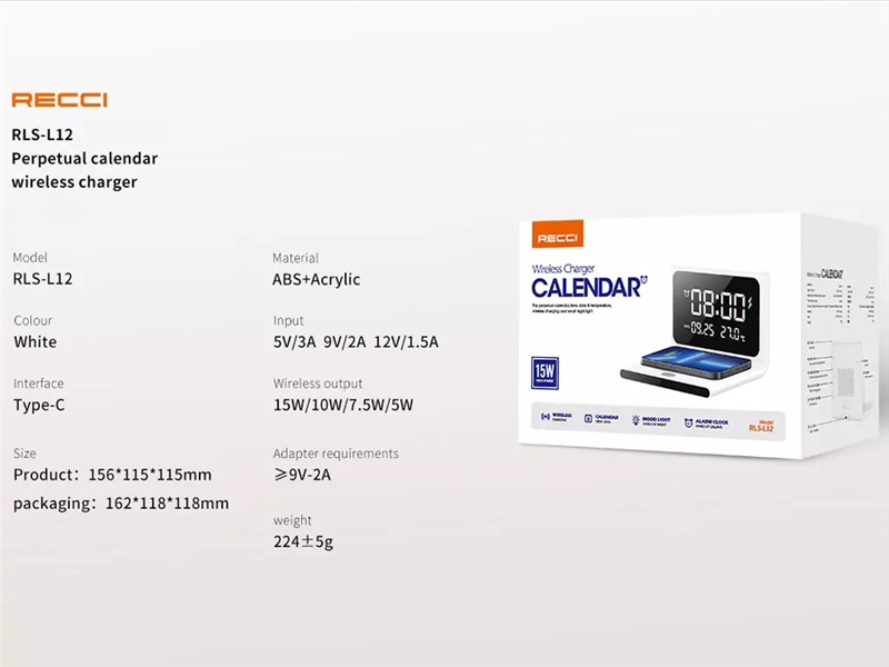 ساعت رومیزی و شارژر وایرلس رسی Recci RLS-L12