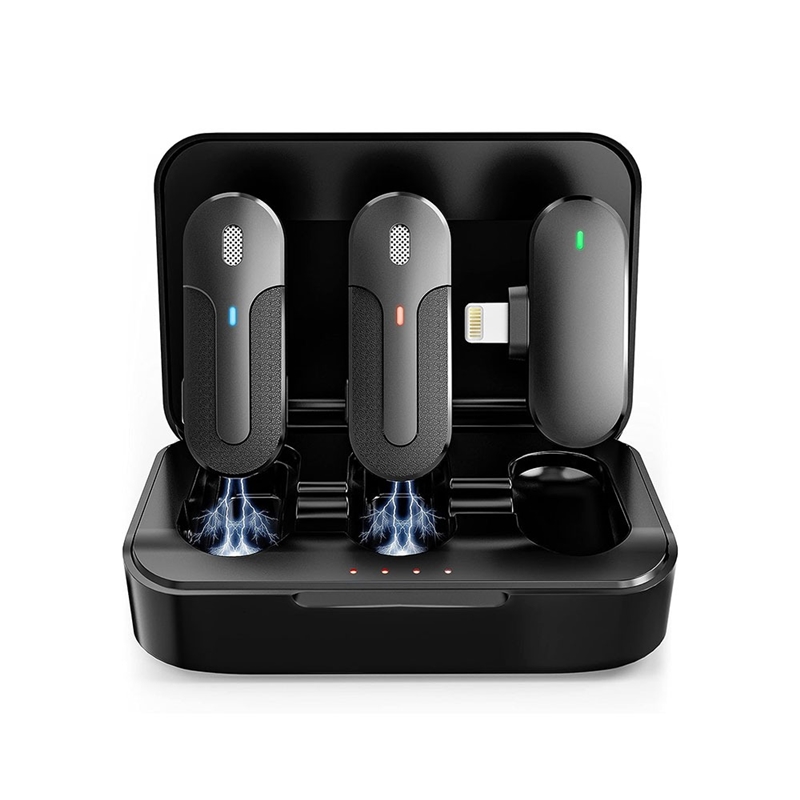 اتصال آسان و اتوماتیک: بدون نیاز به نصب نرم‌افزارها یا بلوتوث، این میکروفون‌ها به صورت Plug & Play عمل می‌کنند. کافیست رسیور لایتنینگ را به دستگاه خود وصل کنید و میکروفون‌ه