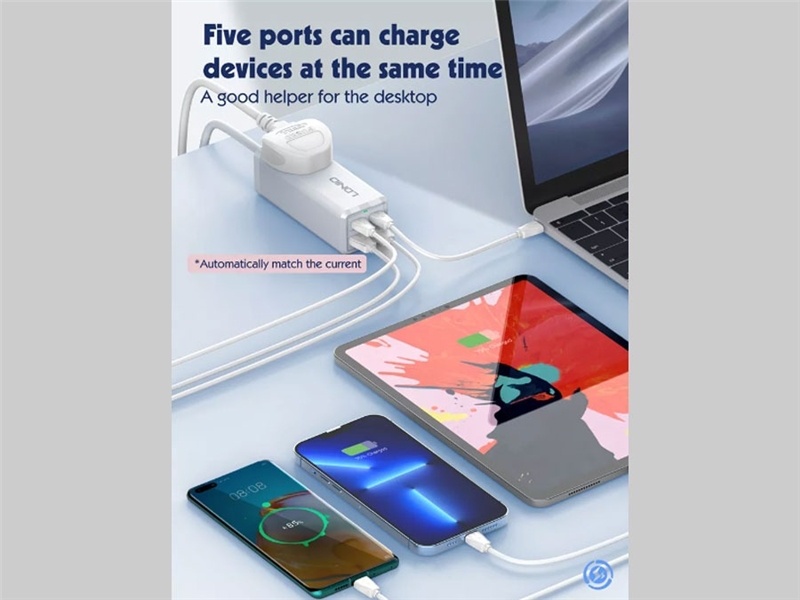 امکان شارژ محصولات اپل شامل گوشی و تبلت های این برند با پشتیبانی از استاندارد PD 3.0 با توان خروجی حداکثر 65 وات به وسیله درگاه تایپ سی و همچنین پشتیبانی از استاندارد QC 3.0 برای سایر گوشی های اندروید روی درگاه USB-A با توان خروجی 60 وات را داراست.