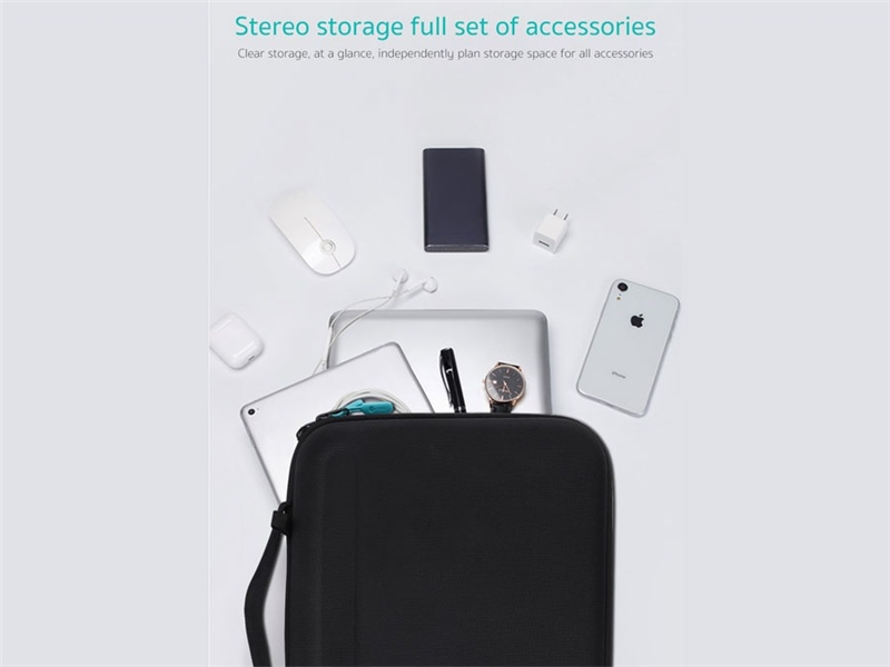 دارای یک زیپ بوده و درون آن به سه بخش با جیبهای مختلف طراحی شده؛ یک جیب مختص قرار دادن آیپد؛ جیب وسط با تقسیمبندیهایی که دارد نظم خاصی به لوازمی مانند انواع کابل، قلم لمسی، کارت اعتباری، شارژر دیواری، پاوربانک و ... میدهد. بخش سوم هم جیبی پوشانده شده با یک توری است و میتوانید برای قرار دادن دفترچه یا دیگر لوازمتان استفاده کنید.