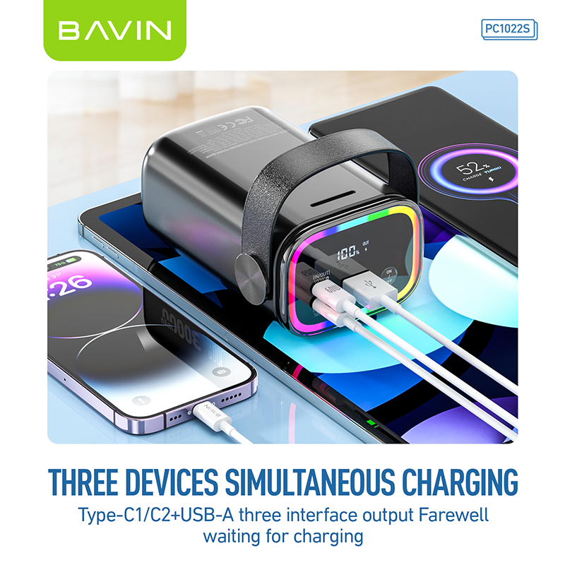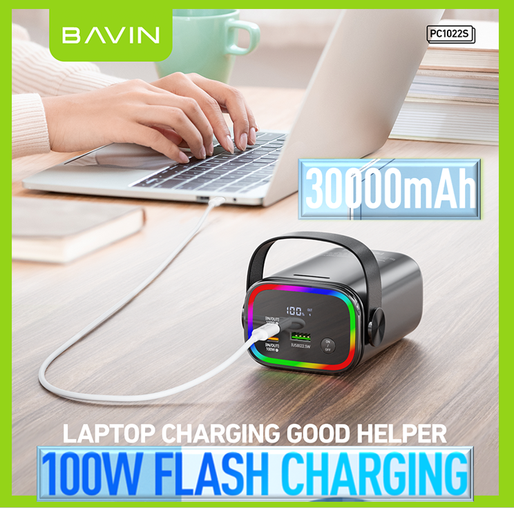 به دلیل توان 100 واتی پورتهای تایپ سی پاوربانک Bavin PC1022S شما می توانید لپتاپ های خود را با این دستگاه شارژ کنید. قابل ذکر است لپ تاپ شما باید از این قابلیت پشتیبانی کرده و توان آن 65 وات به بالا باشد.