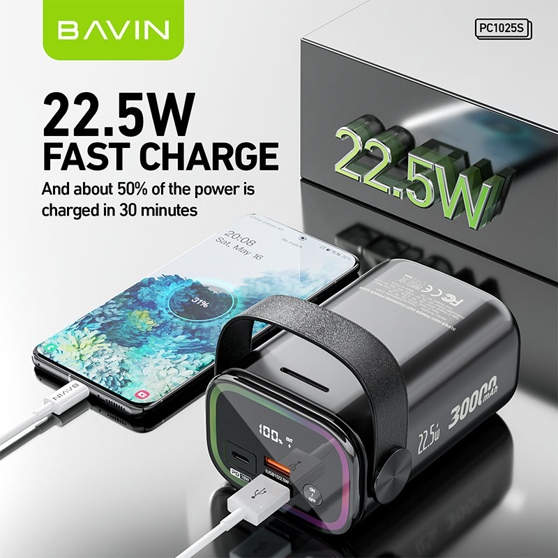 پاوربانک این روزها از ضروری ترین وسایل همراه ما به حساب می آیند. پاوربانک Bavin PC1022Sعلاوه بر پاوربانک بودن دارای چراغ قوه برای روشنایی بوده که باعث شده شما بتوانید با استفاده از این محصول و بدون دغدغه به سفر و کمپ رفته و از آن استفاده کنید. پاوربانک باوین PC1022S با داشتن 3 پورت خروجی، توان 100 وات و ظرفیت اسمی 30000 میلی آمپر ساعت می تواند همراه خوبی برای شما باشد.