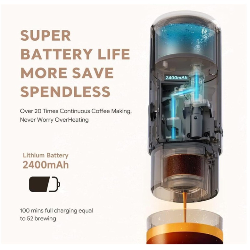 قهوه ساز شارژی قابلیت سرو انواع اسپرسو حمل آسان و سبک قابلیت استفاده از قهوه کپسولی