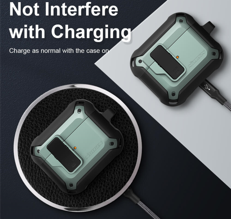 Nillkin Bounce Case که از TPU و PC ساخته شده است، از ایرپادهای شما در برابر ضربه محافظت می کند. در این کیس به وسیله دکمه ای که روی آن قرار داده شده است باز میشود،و بسته شدن آن نیز خیلی آسان و روان انجام میگیرد.. طراحی ضربه گیر چهار گوشه هر گونه اضطراب شما را در مورد هر ضربه و سقوطی از بین می برد؛خیلی خیلی سازگار هست با شارژر های وایرلس و بیسیم.