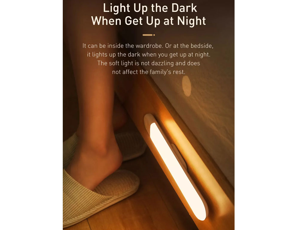 چراغ خواب هوشمند بیسوس مجهز به عناصر القایی دوگانه سنسور حرکتی PIR و حساس به نور القایی است و با دریافت هرگونه تحرک، به صورت کاملا هوشمند روشن شده و اگر راهرو، اتاق یا انباری، زیر کابینت و داخل کمد دیواری شما نیاز به منبع نور با این کارکرد دارد، میتوانید از این چراغ خواب بینظیر استفاده کنید.