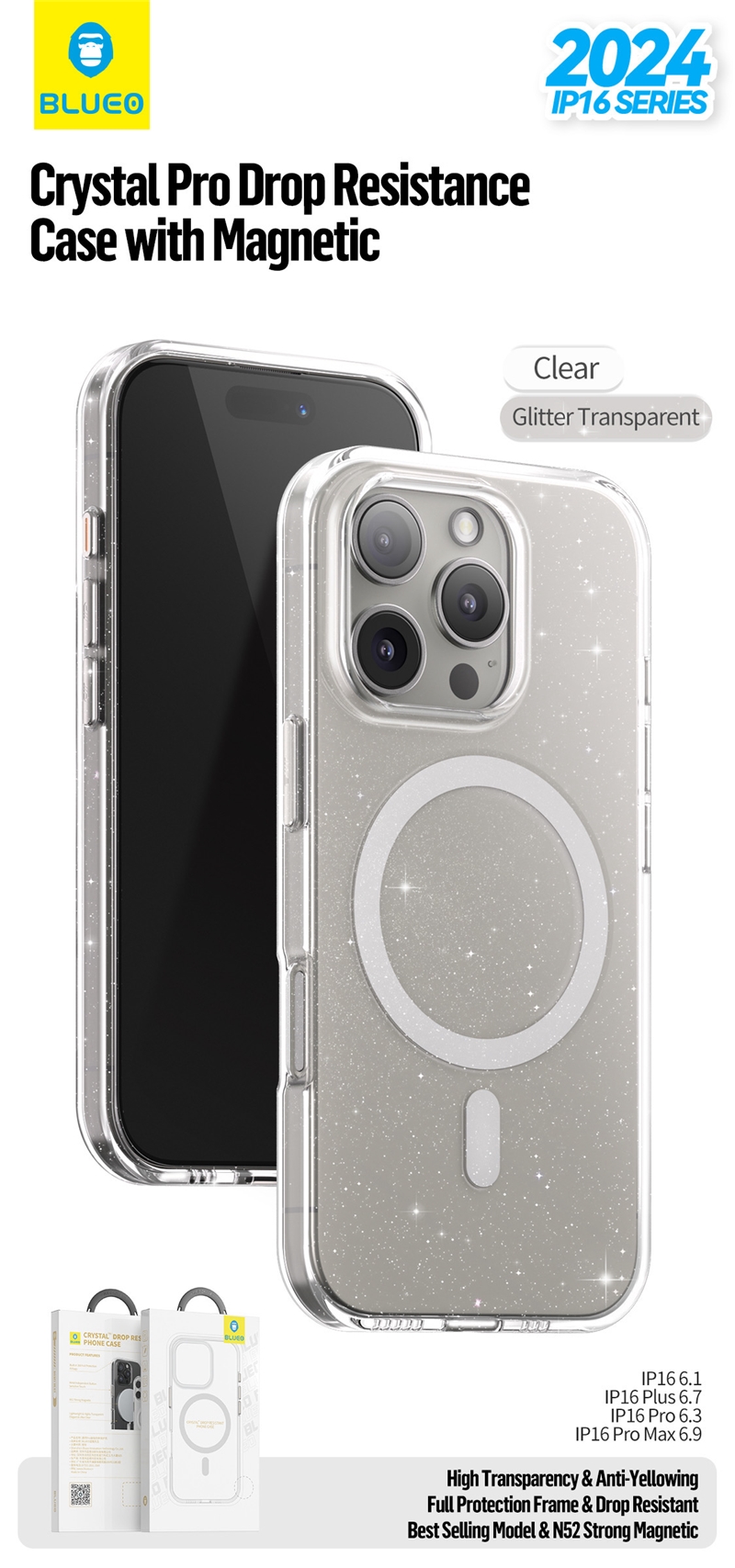قاب برند بلوئو مدل Blueo Crystal glitter Pro Drop Resistance Phone Case With Magnetic Iphone مناسب برای Apple iPhone 16 Pro Max