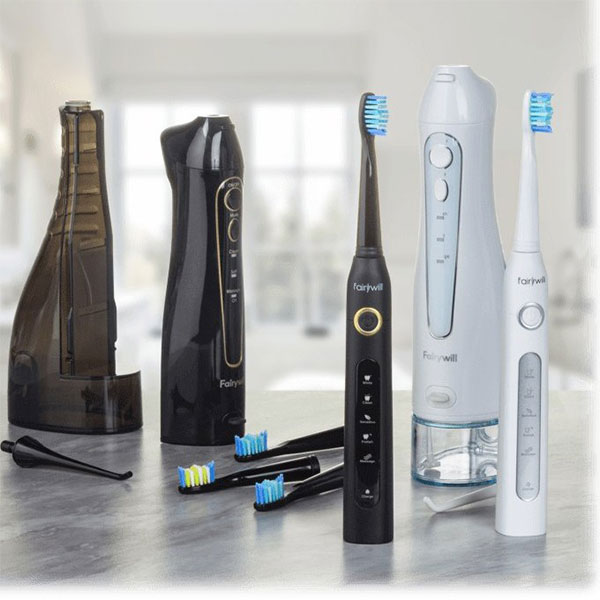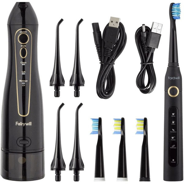 مسواک برقی:سبک و خوشدست: این مسواک برقی با وزن کم و طراحی ارگونومیک، استفاده از آن را بسیار راحت میکند.سریهای مختلف: 4 سری برس با موهای نایلونی نرم و با کیفیت در این پکیج وجود دارد که میتوانید متناسب با نیاز خود از آنها استفاده کنید.قدرت تمیز کنندگی بالا: 40000 حرکت در دقیقه و 5 حالت تنظیم سرعت، تمیزی کامل دندانها را تضمین میکند.ضد آب: با استاندارد IPX7 میتوانید بدون نگرانی از نفوذ آب، از این مسواک در حمام استفاده کنید.واترجت:جایگزینی ایدهآل برای نخ دندان: این دستگاه با پاشش آب با فشار بالا، به طور کامل بین دندانها را تمیز میکند و به سلامت لثهها نیز کمک میکند.3 حالت تنظیم فشار: میتوانید با توجه به نیاز خود، از بین حالتهای نرم، پالسی و تمیز کننده عمیق، حالت مورد نظر را انتخاب کنید.مخزن 300 میلیلیتری: این مخزن بزرگ، برای چندین بار استفاده بدون نیاز به پر کردن مجدد کافی است.چرخش 360 درجه: سریهای واترجت تا 360 درجه میچرخند و به راحتی به تمام نقاط دهان شما دسترسی دارند.