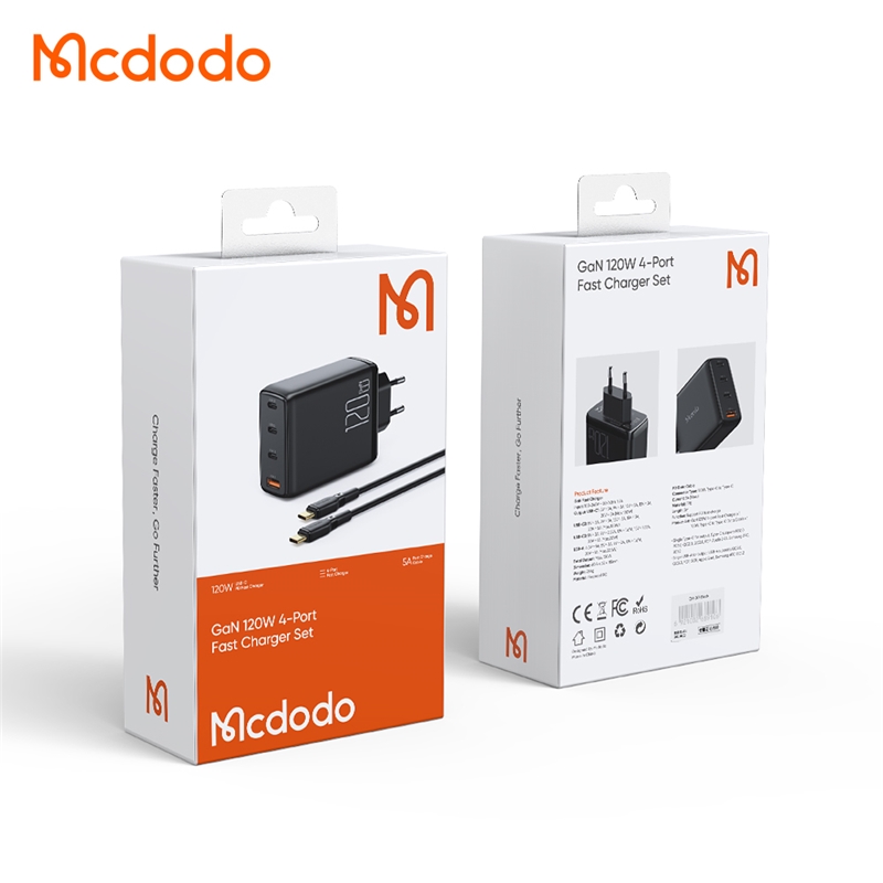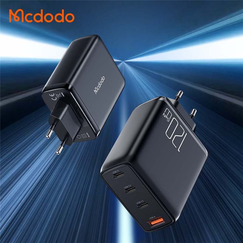 شارژر آداپتور دیواری چهار پورت 120 وات مک دودو به همراه کابل 2 متری MCDODO CH-0771 120W GaN Three Type-C + USB-A Universal Charger