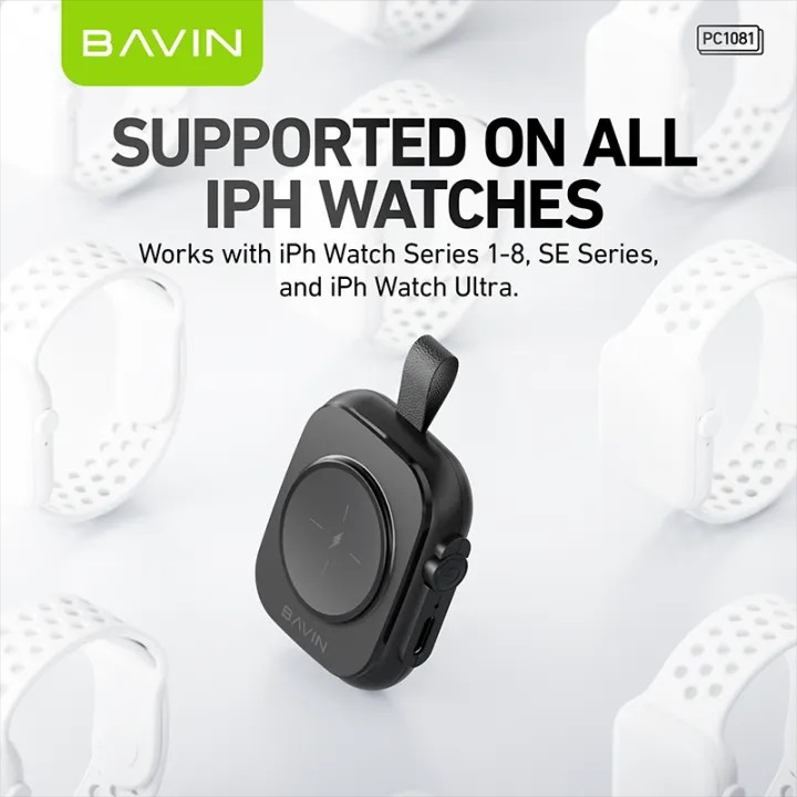 پاوربانک اپل واچ باوین PC1081 با تمامی مدلهای آیواچ از سری 1 تا 8، SE و حتی مدل اولترا سازگار است. فرقی نمیکند چه مدلی دارید پاوربانک اپل واچ باوین PC1081 برای همه کار میکند!