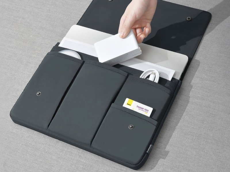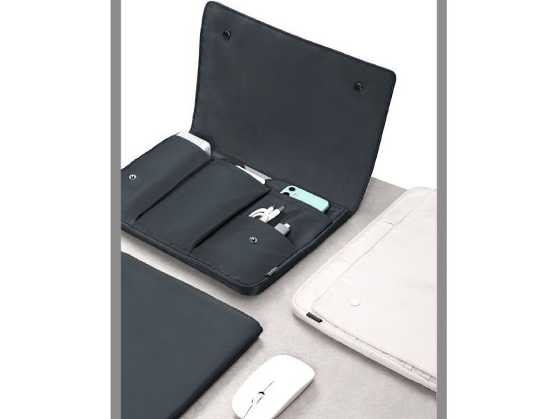 علاوه بر محفظه اصلی برای قرار دادن لپ تاپ، دارای 4 جیب کوچک برای قرار دادن اشیاء و لوازم جانبی از جمله سیم پاور لپ تاپ، ماوس، گوشی، خودکار و غیره