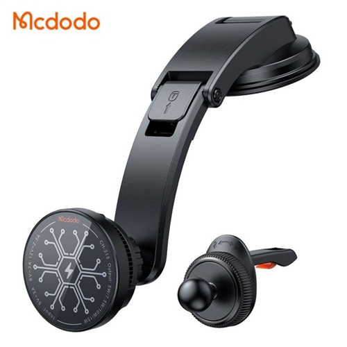 هولدر مک دودو مدل CH-2130 برای گوشی های آیفون 12 به بالا قابل استفاده و یک هولدر چند کاره است که از چند بخش مختلف تشکیل شده، اول یک گیره مگنتی است که هم دارای قابلیت شارژ MagSafe است؛ هم فن خنک کننده دارد و در پشت گوشی شما می‌چسبد. دوم دارای دو نوع پایه است، یکی برای نصب روی داشبورد یا شیشه و دیگری برای نصب روی دریچه کولر خودرو که بسته به سلیقه خود می توانید از هر کدام استفاده کنید. می توانید گیره آن را از پایه جدا کرده و به صورت یک شارژر وایرلس مگنتی و فن خنک کننده گیمینگ برای گوشی خود استفاده کنید. هولدر Mcdodo CH-2130 از مواد ABS و PC ساخته شده است. آهنربای 12N استفاده شده در گیره هولدر بسیار قوی بوده و تحمل 1.2 کیلوگرم وزن دارد. پس خیالتان بابت نیفتادن گوشی راحت است. پایه داشبوردی آن دارای بازوی تنظیم شونده است. و شما می توانید زاویه قرار گیری گوشی را به صورت 360 درجه تنظیم کنید. ابعاد گیره هولدر مگ سیف برابر x60x4360 میلیمتر است و وزن آن 85 گرم است. این هولدر دارای نورپردازی RGB هم هست که به زیبایی آن افزوده است. گیره هولدر Mcdodo CH-2130 به صورت مگنتی به گوشی میچسبد و با حداکثر توان 15 وات آن را شارژ می کند. توان شارژ بسته به گوشی شما می تواند بین 5W/7.5W/10W/15W متغیر باشد؛ اما خاصیت مگنتی و MagSafe فقط برای گوشی آیفون 12 به بعد و آیپد در دسترس است. برای استفاده از قابلیت شارژ وایرلس می توانید از شارژر فندکی با خروجی 5V/3A-9V/3A-12V/2.5A استفاده کنید. امکان شارژ تا فاصله 6 میلیمتری وجود دارد که باعث می شود به راحتی بدون اینکه لازم باشد کاور گوشی را در بیاورید آن را شارژ کنید. هولدر وایرلس مگنتی مک دودو دارای فن 7 پره است و به صورت فیزیکی عمل خنک کردن را انجام می دهد. دارای ساختار چند لایه است و با سرعت دمای گوشی را پایین می آورد. طبق ادعای سازنده ظرف مدت 3 ثانیه دمای گوشی را 20 درجه پایین می آورد که باعث میشود تا بازی ها روان تر اجرا شوند. زمانی که گوشی را روی هولدر مگ سیف Mcdodo CH-2130 قرار می دهید و فرآیند مسیریابی را انجام می دهید هم گوشی شما داغ نمی کند. فن آن صدای زیادی ندارد و در مکالمات یا ضبط ویدیو شما نویز ایجاد نخواهد کرد. مک دودو یکی از شرکت های بزرگ و بسیار معروف در زمینه تولید لوازم جانبی موبایل و از پیشروهای این صنعت است.