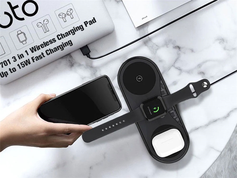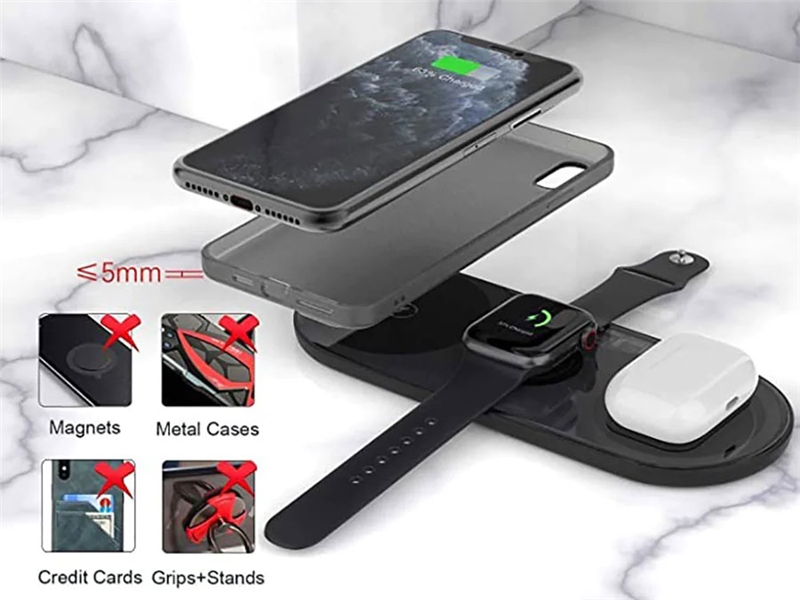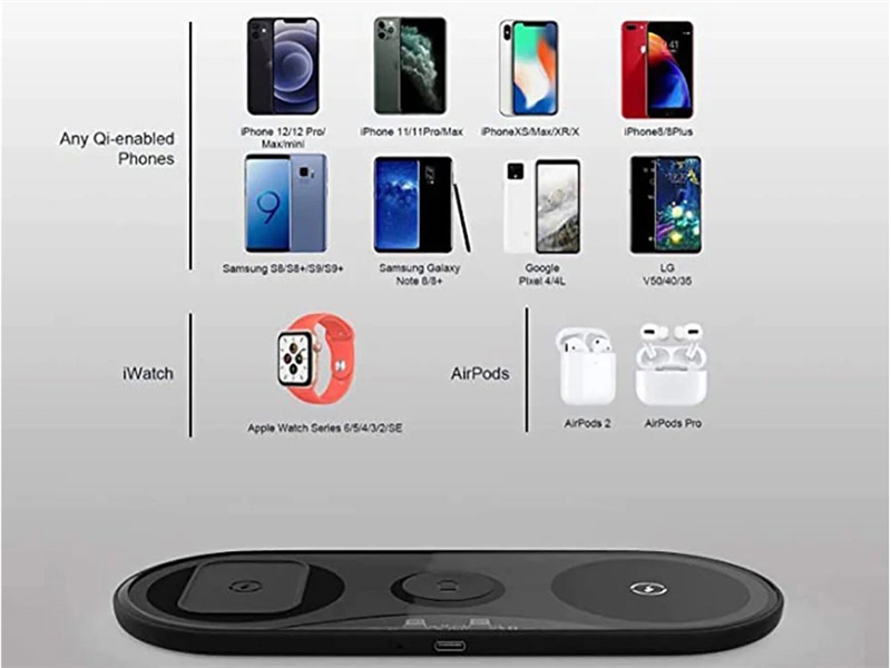 این محصول رسی با دستگاه‌های iPhone 13/13 pro/mini /max/12/12 Mini/12 Pro/12 Pro Max/11/11 Pro/11 Pro Max/XS Max/XR/XS/X/8/8 plus /SE 2، Samsung Galaxy S10، S9/ S9+/ S8/ S8+/ S7/ S7 Edge/ S6 و هر گوشی دیگری که قابلیت Qi، AirPods 2/AirPods Pro، Apple Watch SE، Apple Watch Series 6/5/4/3/ 2 سازگار است و از AirPods 1 و برندهای دیگر هدفون/ساعت پشتیبانی نمی کند.