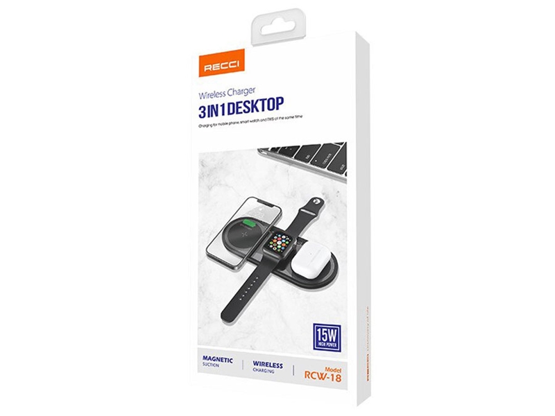 شارژر بی سیم سه در یک RCW18 محصولی از کمپانی رسی است که با حذف سیم، از شلوغی اطراف به خاطر وجود کابل شارژرهای مختلف می‌کاهد. این محصول به گونه‌ای طراحی شده که می‌توانید به صورت همزمان موبایل، هندزفری بی سیم و ساعت هوشمند خود را شارژ کنید.