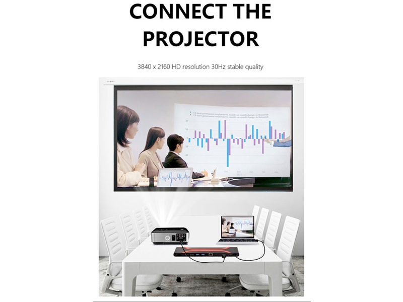 راه حل جدیدتری برای انتقال تصویر نیز وجود دارد که صدا را هم منتقل میکند و آن HDMI است. درگاه اچ دی ام آی روی هاب دارای رزولوشن 4K، کاملا واضح میباشد و دارای نرخ نوسازی 30Hz می باشد.می توانید همزمان تصویر انتقال داده شده را بر روی لپ تاپ خودتان هم داشته باشید.