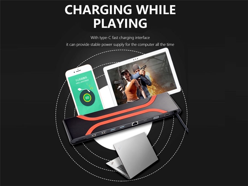 Lenovo LX1901 10 in 1 Type C HUB Ultra thin Stand USB 3.0