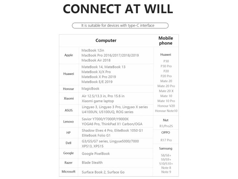 یک کانکتور تایپ سی به وسیله کابل به هاب وصل است که سبب شده تمام دستگاهها و گوشهای دارای این درگاه بتوانند از آن استفاده کنند.