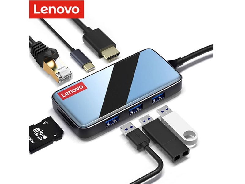 هاب تایپ سی لنوو Lenovo ER08 SD TF Card Reader 8 in 1 hub با پورت شبکه