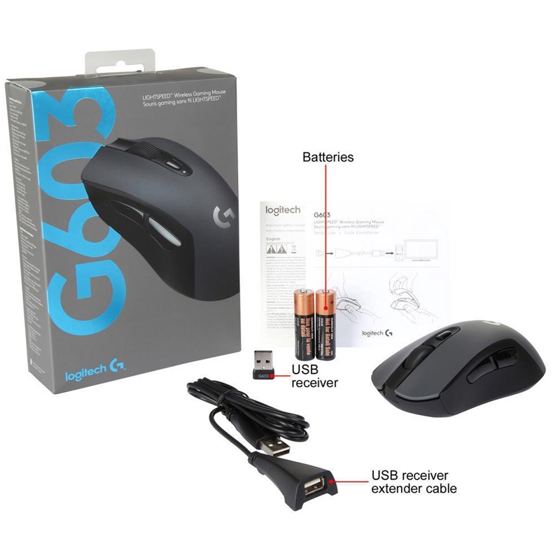موس‌ بی‌سیم سری G603 لاجیتک باویژگی‌هایی نظیر سنسور HERO و تکنولوژی بی‌سیم LIGHTSPEED خود قادراند عملکردی بی‎‌نظیر، دقت بالا، و سرعت فوق‌العاده را به شما عرضه کند و همچنین مصرف باتری قدرتمند آن توانسته است تا استانداردی جدید در عرصه موس‌های بی‌سیم گیمینگ به وجود آورد.سنسورهای نوری HERO توسط شرکت لاجیتک ابداع و مورد استفاده قرار گرفته است. این سنسورها از 10 برابر کارایی و عملکرد بالاتر نسبت به محصولات مشابه و نسل قبل خود برخوردار هستند و می‌توانند دقت و سرعتی از 200 تا 12000DPI را در خدمت شما قرار دهند. موس G603 از اتصال بی‌سیم قدرتمند برخوردار بوده و با استفاده از تکنولوژی LIGHTSPEED توانسته است تا مشکلاتی نظیر تاخیر و قطع اتصال را برطرف سازد و دسترسی به عملکردی ثابت و پایدار را برای شما امکان پذیر کند. شما با استفاده از کلید موجود می‌توانید یکی از حالت‌های HI و LO را انتخاب کنید. حالت HI برای بازی‌های کامپیوتری در نظر گرفته شده است و با استفاده از تکنولوژی LIGHTSPEED می‌تواند بالاترین عملکرد، نرخ پاسخگویی 1 میلی ثانیه‌ای، و 500 ساعت بازی بی‌وقفه را در خدمت شما قرار دهد. حالت LO دارای عمر باتری 18 ماه بوده و از نرخ پاسخگویی 8 میلی ثانیه برخوردار است و می‌توانید در کارهای روزمره خود از آن استفاده کنید.قابلیت اتصال دوگانه از طریق LIGHTSPEED و Bluetooth به شما اجازه می‌دهد تا به آسانی به تجهیزات مورد نظر متصل شده و آنها را کنترل کنید. شما به آسانی و تنها با یک کلیک ساده می‌توانید دو دستگاه متصل شده را به طور همزمان کنترل کنید.موس گیمینگ بی‌سیم G603 قادر است تا با استفاده از 2 باتری قلمی عملکردی 500 ساعته را به شما ارئه کند. زمانی که باتری به 15% درصد از شارژ خود برسد LED های موجود شما را آگاه کرده تا در صورت لزوم آنها راتعویض کنید. همچنین شما می‌توانید تنها با استفاده از یک باتری این موس را روشن کرده و به کار با آن ادامه دهید.شما می‌توانید تمامی کلیدهای موس G603 را بسته به نیاز خود تنظیم و مدیریت کنید. این موس از 6 کلید با قابلیت برنامه ریزی برخوردار بوده و همچنین به شما این امکان را می‌دهد تا از 5 سطح DPI مختلف موجود یکی رابه دلخواه انتخاب کنید. همچنین شما می‌توانید این موس را به آسانی شخصی سازی کنید و پروفایل‌های پیکربندی شده خود را درحافظه داخلی آن ذخیره سازی کنید