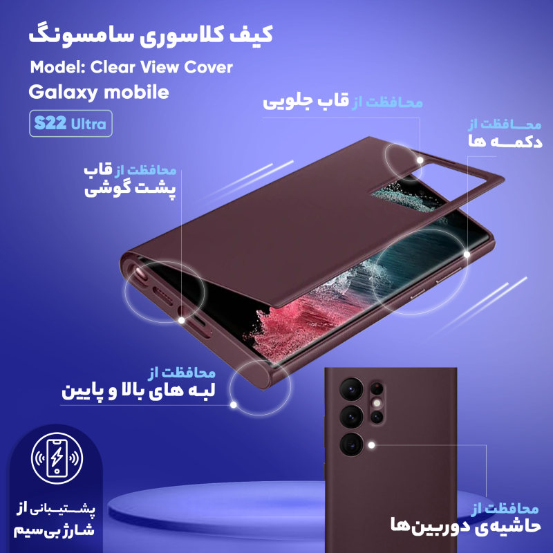 کیف اصلی Samsung Galaxy S22 Ultra 5G Smart Clear View Cover