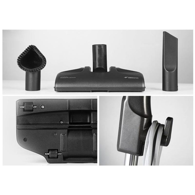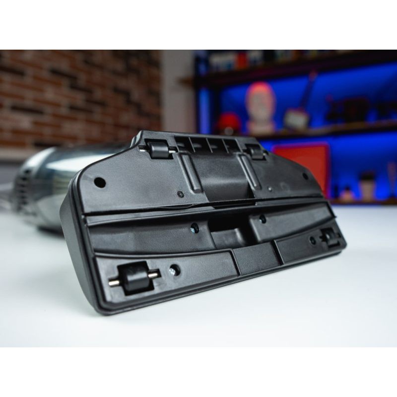 شما میتوانید دسته را کوتاه کنید و با کمک سری گرد برس دار، فضای داخل ماشین (یا تخت خواب) را وکیوم و تمیز کنید. نازل تخت هم با دهانه 1 سانتی متری مخصوصا برای تمیز کردن لای صندلی ها و داشبورد ماشین مناسب است.