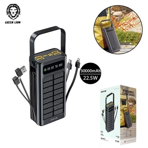 پاوربانک خورشیدی 30000 گرین لاین Green Lion Solar X GLPX49 GNSOL49PB30BK یک شارژر همراه قدرتمند و مطمئن برای سفر، کمپینگ و استفاده روزمره است. این پاوربانک با ظرفیت 30,000 میلی‌آمپر ساعت به‌راحتی چندین بار دستگاه‌های شما را شارژ می‌کند. وجود پنل خورشیدی داخلی این امکان را فراهم می‌سازد که حتی در محیط‌های بدون برق، بتوانید انرژی موردنیاز خود را تأمین کنید.