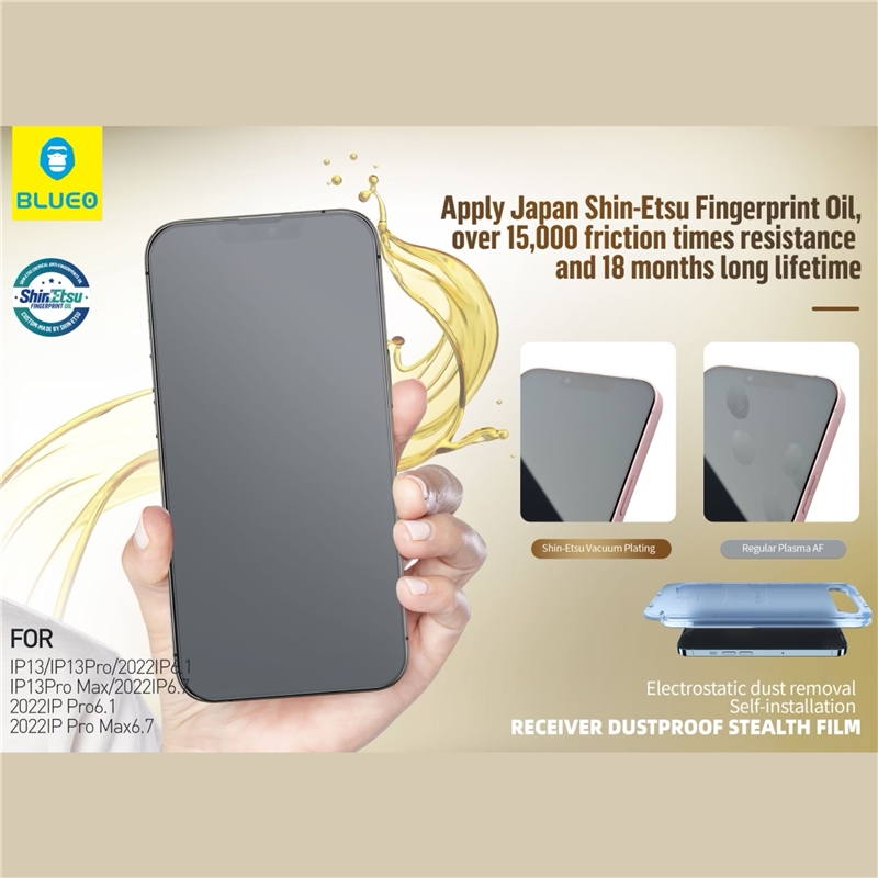محافظ صفحه بلو Blueo Anti Dust HD Glass Anti Static With Applicator مخصوص آیفون، انتخابی هوشمندانه برای کسانی است که به دنبال محافظت کامل، نصب آسان و تجربهای شفاف از نمایشگر گوشی هستند.