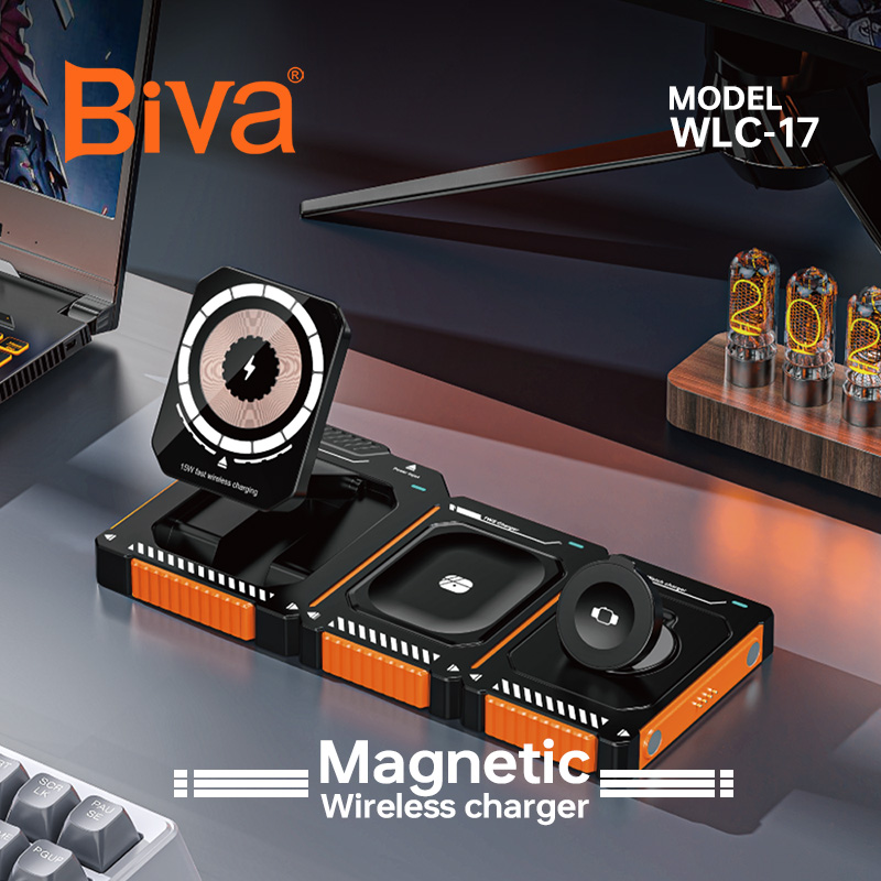 استند و شارژر وایرلس چند کاره مگ سیف بیوا Biva WLC-17 با قابلیت شارژ اپل واچ