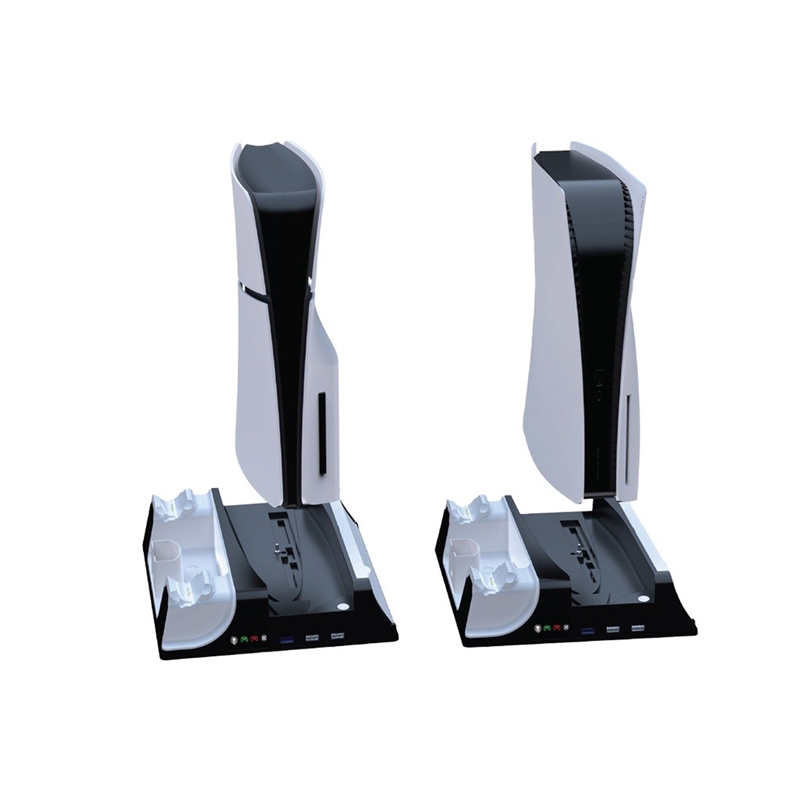 این ایستگاه مجهز به 3 پورت USB-A خروجی (5V/1.5A) است که امکان شارژ همزمان دو دسته DualSense و یک هدست یا سایر لوازم را فراهم می کند. همچنین با پورت ورودی USB-A (5V/2A) و درگاه DC (5V/3A) می توانید منبع تغذیه ی مورد نیاز را به راحتی تأمین کنید. دیگر نیازی به چندین آداپتور جداگانه نیست—همه چیز در یک دستگاه جمع شده است!