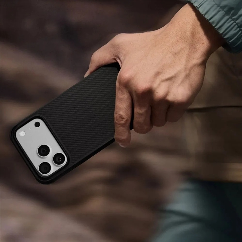سطح قاب با بافت دقیق Twill ساخته شده است که علاوه بر مقاومت، حس لمس نرم و لوکس را فراهم میکند. این قاب نه تنها سبک و مقاوم است، بلکه تجربه در دست گرفتن گوشی را لذتبخش میکند.