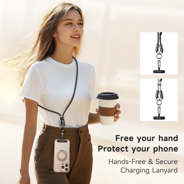 🧵 طراحی چندمنظوره (2in1): ترکیب کابل شارژ و بند آویز گردنی برای استفاده آسان در سفر، کار یا خیابان.