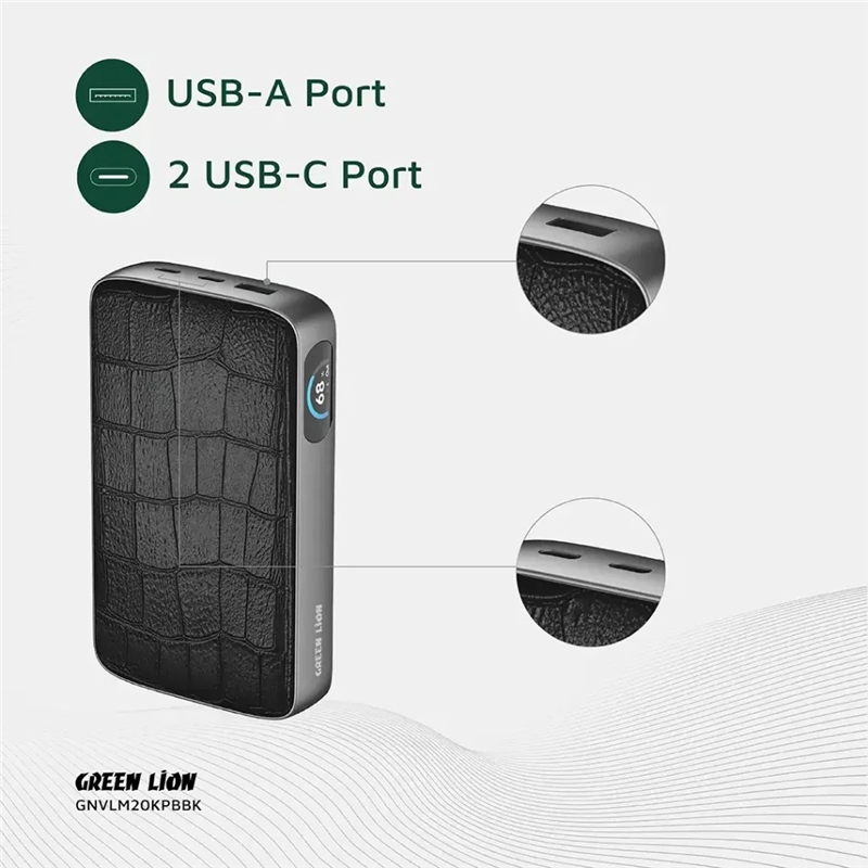 سایر توضیحاتحداکثر توان خروجی 100 وات ضفحه نمایش دیجیتال مناسب برای شارژ موبایل،تبلت و مک بوک شارژ سریع QC 18W و PD65W,PD100W جنس بدنه چرمی