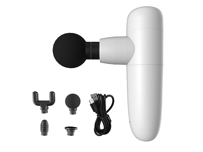 درون پک ماساژور تفنگی شیائومی FunSnap Cooper علاوه برا ماساژور 4 نوع سری ماساژ و کابل شارژ Type C نیز قرار دارد