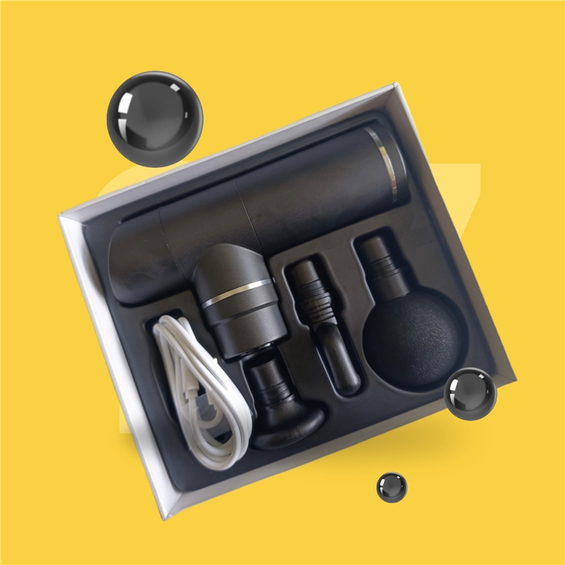 درون پک ماساژور تفنگی شیائومی TL-FMM-02 علاوه برا ماساژور 4 نوع سری ماساژ و کابل شارژ Type C نیز قرار دارد.