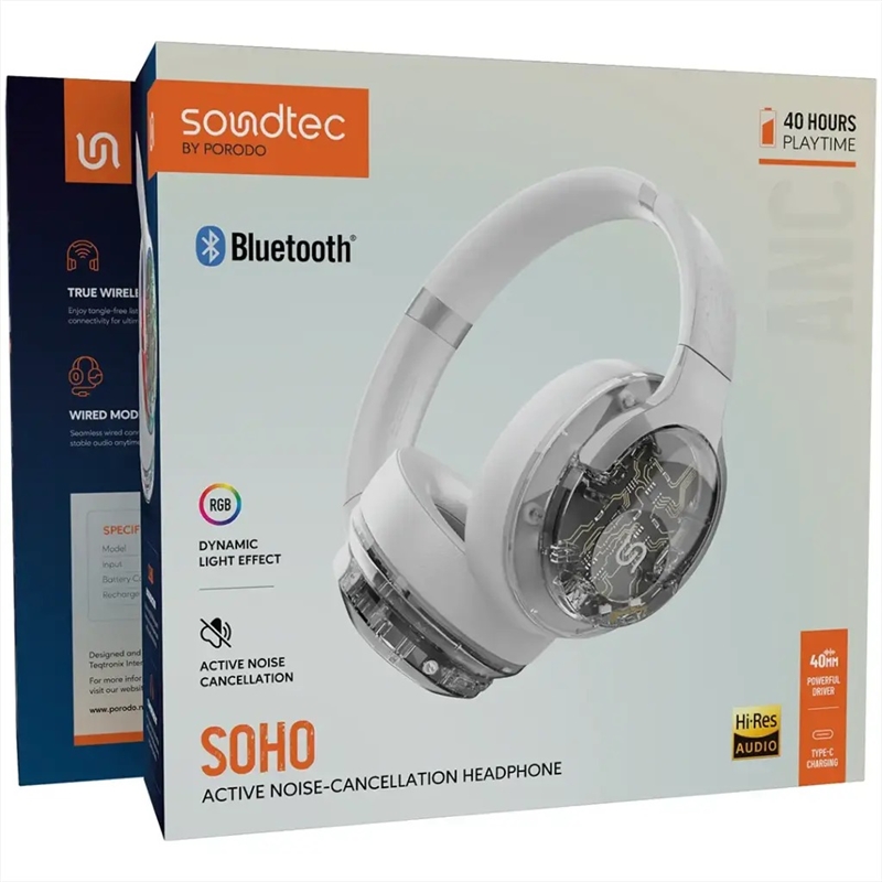 هدست بلوتوثی پرودو مدل Porodo Soundtec Soho PDST2227 یک گزینه حرفه‌ای و خوش‌ساخت برای کاربرانی است که به‌دنبال کیفیت صدای بالا، طراحی مدرن و راحتی استفاده طولانی‌مدت هستند. این هدفون با بهره‌گیری از فناوری‌های صوتی پیشرفته و اتصال پایدار بلوتوث، تجربه‌ای لذت‌بخش از گوش‌دادن به موسیقی، تماشای فیلم و مکالمه فراهم می‌کند.