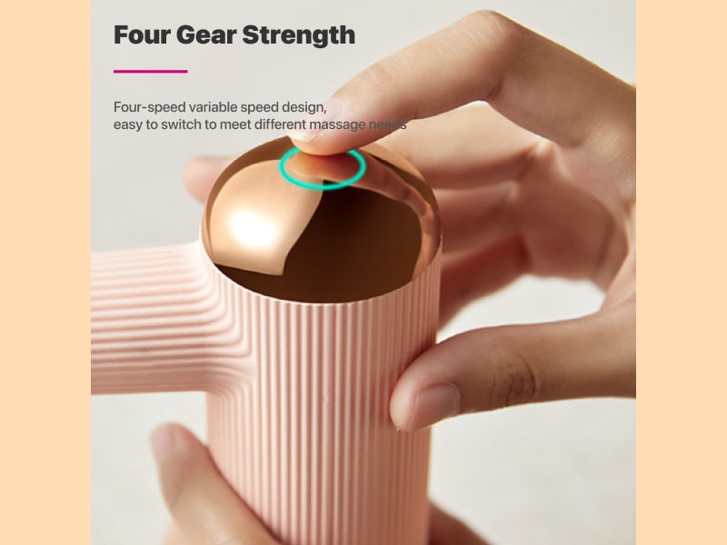 دنده 1 که با رنگ آبی نشان داده میشود دارای سرعت 1600 دور بر دقیقه است و برای رفع خستگی عضلات بوده، دنده 2 با رنگ سبز دارای سرعت 2200 برای ماساژ عمیق و قدرت میانی دستگاه به کار می رود، در این حالت سرعت پخش اسید لاکتیک بدن افزایش می یابد تا از تجمع آن جلوگیری شده که باعث ایجاد درد در بدن و عضلات نشود. همان طور که اشاره کردیم، درد بدن بعد از تمرین، بیشتر نتیجه همین تجمع اسید لاکتیک خواهد بود. دنده 3 با رنگ زرد دارای سرعت 2600 برای تسکین درد استفاده میشود و شدت بیشتری خواهد داشت، دنده 4 نیز که با رنگ قرمز نشان داده میشود، نیز با سرعت 3200 برای ماساژ تخصصی و فرم دهی عضلات هست.