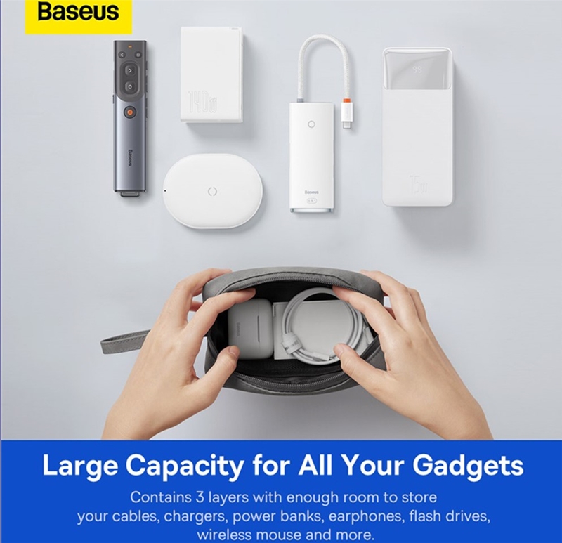 جمع کردن وسایل دیجیتالی و کوچک یکی از سخت ترین کارها هنگام مسافرت و جا به جاییست. پیدا کردن شارژر گوشی، ساعت، پاوربانک و بسیاری دیگر از اکسسوریهای دیگر از داخل چمدان کار پر دردسری بوده و چه بهتر که همه چیز از اول به طور منظم کنار هم چیده شود. کیف لوازم جانبی Baseus LBJX010013 راه حل این مشکل است.