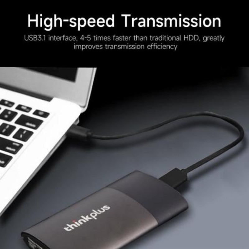 سرعت Read در این محصول بین 430MB/S تا 510MB/S و سرعت Write هم در بازه 410MB/S تا 480MB/S قرار دارد که 4 یا 5 بار سریعتر از هارد دیسک های HDD است. اتصال هارد اس اس دی اکسترنال Thinkplus US202 به سیستم از طریق درگاه USB3.1 تایپ سی انجام میشود. بدین ترتیب کاربران میتوانند به کمک یک کابل TYPE C هارد SSD تینک پلاس را به گوشی خود نیز وصل کنند. لپ تاپ هایی که مانند مک بوک اپل دارای درگاه تایپ سی هستند نیز میتوانند هارد را از همین درگاه پرسرعت به لپ تاپ خود متصل کنند.