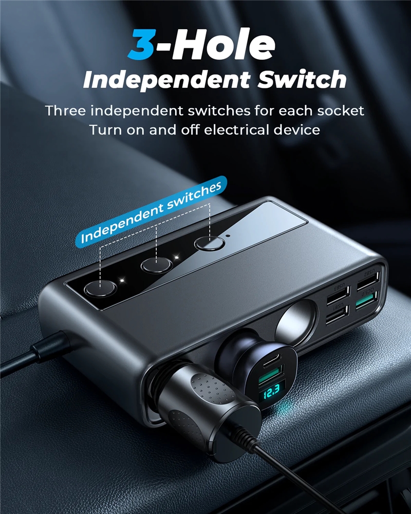 طراحی سوکت های فندکی به گونه ای است که هرکدام دارای کلید مستقل برای کنترل جریان ورودی هستند.