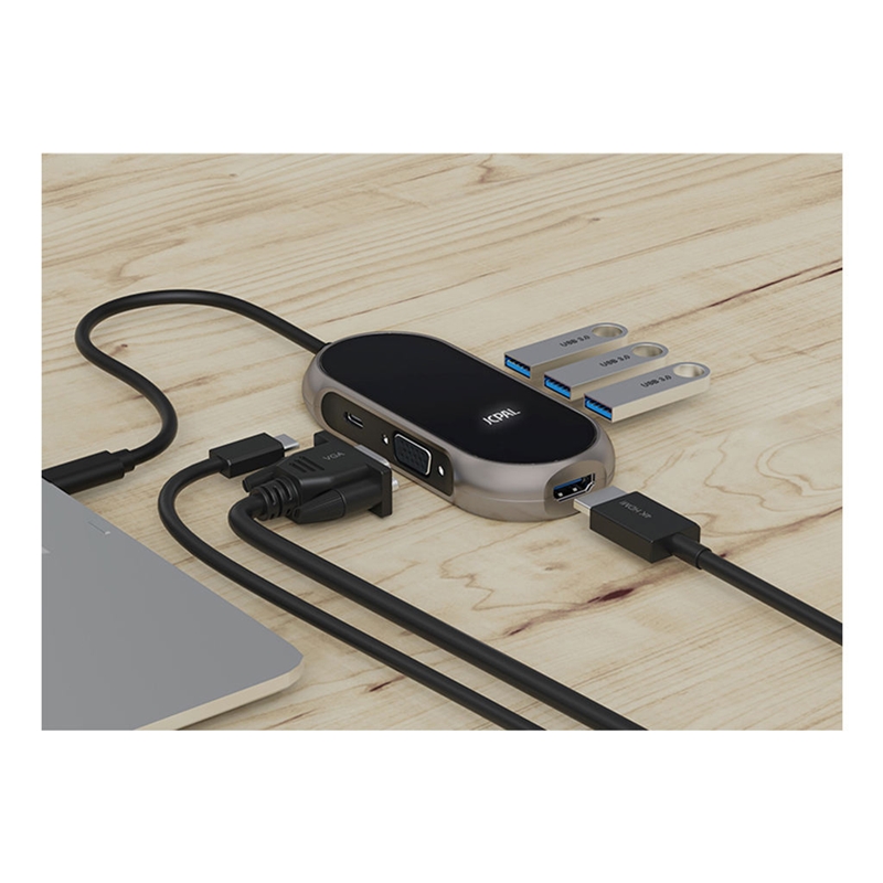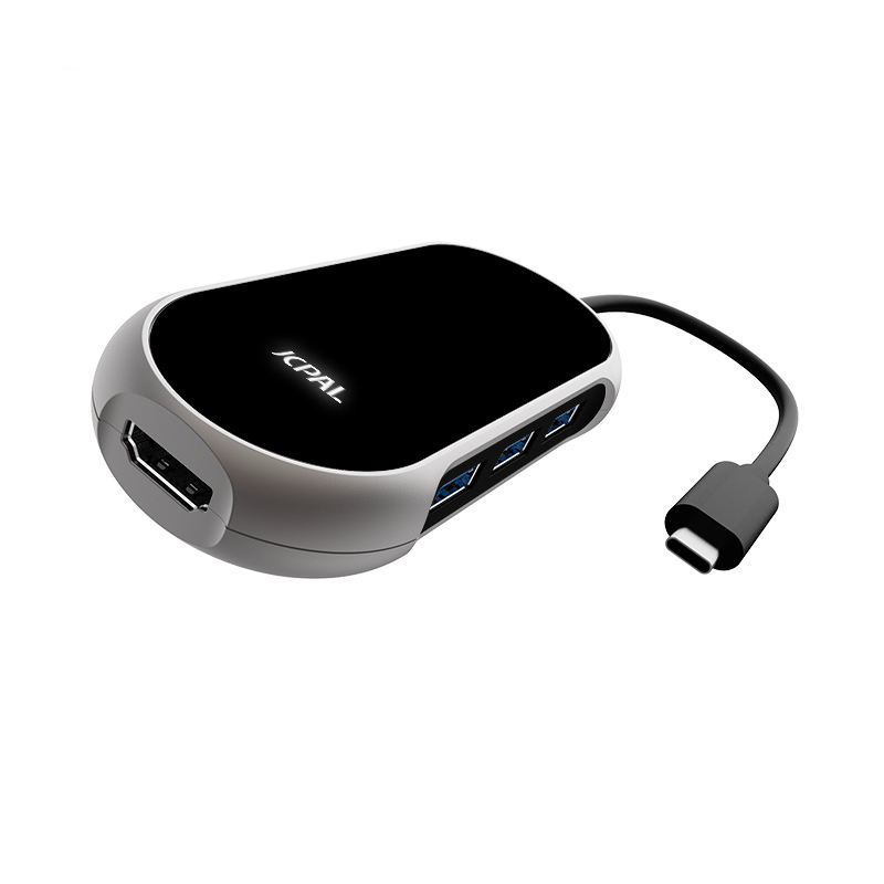 برند جی سی پال JCPAL در این هاب یک خروجی تایپ سی را به 6 خروجی تبدیل کرده است که دارای جنس شیشه ای و آلومینیومی میباشد.