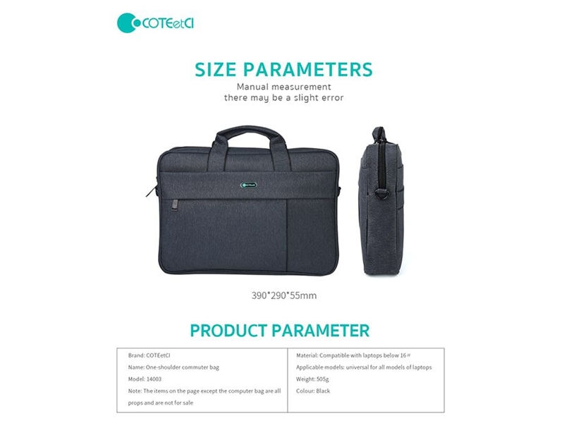 کیف و کوله مناسب نقش مهمی در حفاظت از لپ تاپ ها دارند. خصوصا زمانی که میخواهید لپ تاپ تان را جا به جا کنید لازم است از کیفی استفاده کنید که در عین محافظت از لپ تاپ باعث خستگی شما نیز نشود.کیف Coteetci 14003 دارای سایز 16 اینچ است و میتواند لپ تاپ هایی تا ابعاد 16 اینچ را در خودش جا دهد. در ادامه توضیحات بیشتری در مورد این کیف خواهیم داد.