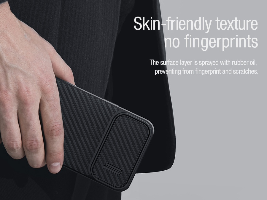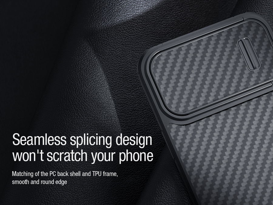 قاب محافظ نیلکین مدل Synethic Fiber S Carbon Fiber از الیاف فیبر کربنی بادوام و مقاوم ساخته شده است که به کمک تکنولوژی سه بعدی و حرارت دهی بافته و پرداخته شده‌اند. طراحی این قاب فیبری به صورتیست که به بهترین نحو ممکن از گوشی محافظت کند. ماده اصلی به کار رفته در این کالا پلی کربنات و TPU است که ترکیبی دقیق از نرمی و استحکام را در کنار هم قرار داده و محصولی با دوام را در اختیار کاربر گذاشته است. اطراف قاب Synethic Fiber s نیلکین14pro max از جنس TPU است تا گوشی به راحتی داخل قاب جا بگیرد و بدنه آن نیز از PC ساخته شده تا از گوشی در برابر خط و خش محافظت کند.