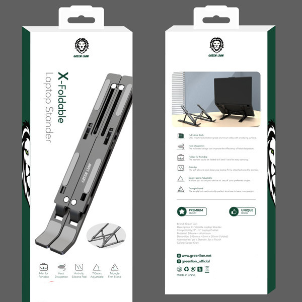 بپردازید یک نعمت بزرگ است. پایه نگهدارنده لپ تاپ گرین مدل X-Foldable با کیفیت بسیار مرغوبی تولید شده که در هنگام کار طولانی مدت برای جلوگیری از آسیب دیدن و خسته شده ستون فقرات گردن و مهرههای کمر به کمک مصرف کننده خواهد آمد. این محصول برای مشاهده راحت و حالت نشستن در صندلی کاملا بهینه شده و در تسکین فشار مهر ههای گردن کمک خواهد کرد. این محصول از قابلیت تنظیم ارتفاع و زاویه برخوردار است و از جنس آلیاژ آلومینیوم با فرآیند آندایزینگ ماسه ریز ساخته شده است. با این پایه نگران افتادن و لیز خوردن لپتاپ خود نبوده و با خیال راحت به کارهای خود بپردازید.حافظ لپتاپ خود باشید. لپتاپها از کالاهای دیجیتال گران بوده و نگهداری و استفاده درست از آنها اهمیت بالایی دارد. پایه نگهدارنده لپ تاپ گرین مدل X-Foldable مکمل خوبی برای لپتاپ شما است و از آن به بهترین شکل ممکن حفاظت میکند. این محصول تنها 198 گرم وزن داشته و جنس بدنه آن از آلومینیوم است. پایه نگهدارنده لپ تاپ گرین مدل X-Foldable برای لپتاپهای 11 اینچ الی 17 اینچ مناسب است و نیاز به فن ندارد. حتما برایتان پیش آمده بعد از استفاده طولانی از لپتاپ داغ کرده و شما را دچار نگرانی میکند. با پایه نگهدارنده لپ تاپ گرین مدل X-Foldableدیگر نگران نباشید. سیستم خنککنندگی پایه نگهدارنده لپ تاپ گرین مدل X-Foldable رسانایی و جریان طبیعی همرفت هوا است. شما قادر به تنظیم زاویه و ارتفاع پایه بوده و متناسب با فعالیتی که انجام میدهید و ارتفاعی که نیاز دارید سطح ارتفاع لپتاپ خود را مشخص کنید. وزن بسیار سبک این محصول باعث شده بهراحتی قادر به حمل آن باشید و زمانی که به دانشگاه یا کتابخانه و یا محیط کار خود میروید آن را همراه داشته باشید. پایه نگهدارنده لپ تاپ گرین مدل X-Foldable برادری مهربان برای لپتاپ شما است.
