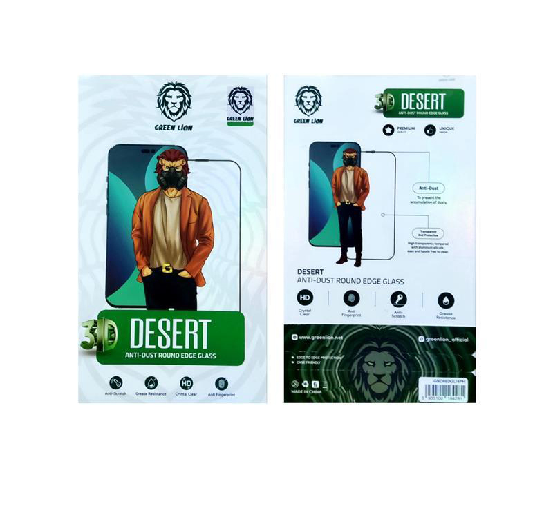 گلس گرین Desert Round Edge- این گلس از برند گرین، یکی از بهترین گلس های موجود در بازار است. این محصول دارای یک توری بر روی اسپیکر است که از ورود گرد و غبار به داخل اسپیکر جلوگیری می کند. همچنین لبه های این مدل، به صورت قوس دار و 3D طراحی شده است. این گلس، دور تمپرد است و به خوبی از صفحه نمایش گوشی شما در برابر ضربه محافظت می کند. همچنین این محصول کاملا ضد خش بوده و در برابر رد اثر انگشت و چربی مقاومت بسیار بالایی دارد. این گلس کاملا شفاف است و همچنین تاثیری روی کیفیت تصویر و عملکرد تاچ صفحه نمایش نمی گذارد. گلس مدل Desert، دارای سختی 9H است و در برابر ضربه های ناگهانی مقاومت خوبی دارد. طراحی این گلس طوری است که مانع انعکاس نور می شود.
