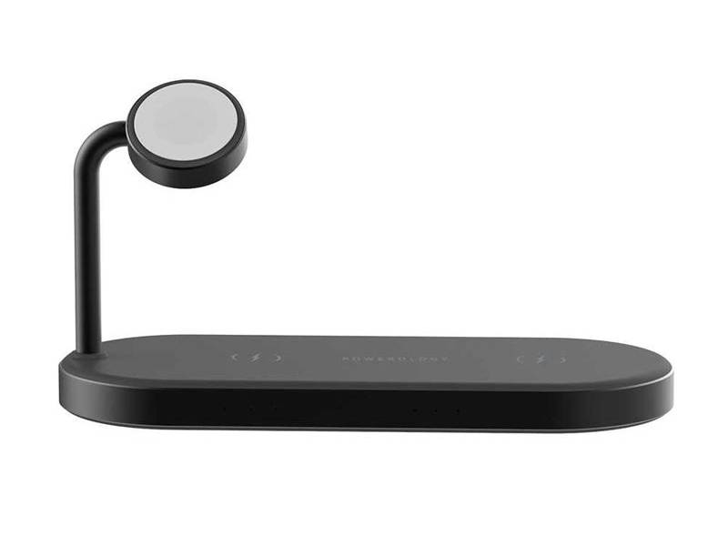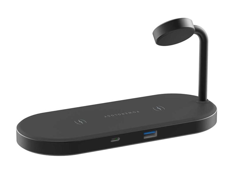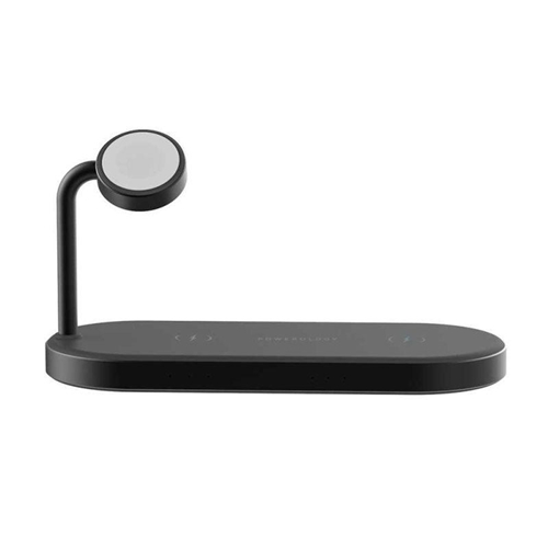 شارژر وایرلس Powerology P31MFCHWH ، طراحی و ساختار منحصربهفردی دارد و یکی از مناسبترین شارژرها برای محصولات اپل است. در قسمت پایه آن، دو پنل شارژ بیسیم در کنار هم وجود دارد که میتوانند گوشیهای مختلف از برندهای متفاوت را با استفاده از فناوری Qi شارژ کنند. در گوشهای از پنل، یک پایه مخصوص قراردادن اپل واچ وجود دارد و در کنار پایه، یک پورت USB برای اتصال کابل شارژ موجود است.
