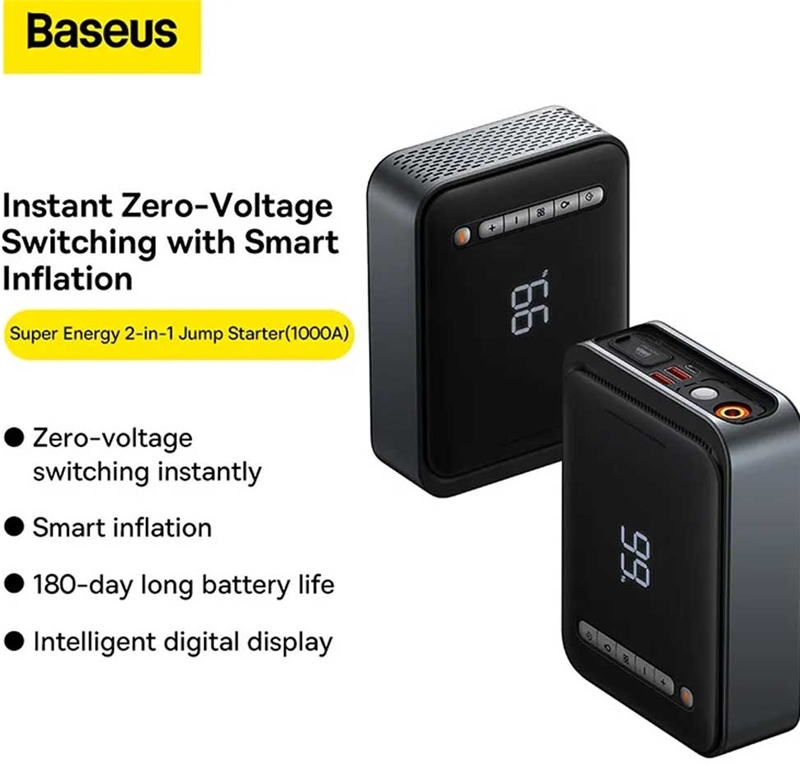 پاوربانک و کمپرسور باد و جامپ استارتر خودرو 8000 میلی آمپر بیسوس Baseus Super Energy CGCN000001