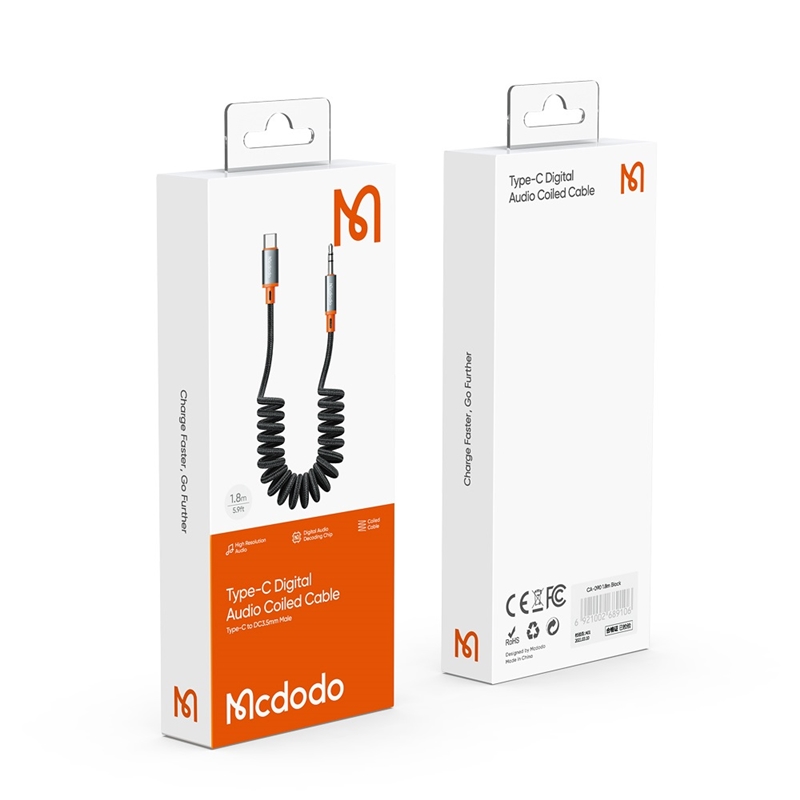 کابل تبدیل فنری تایپ سی به جک 3.5mm هدفون AUX مکدودو MCDODO CA-0900 طول 180 سانتیمتر