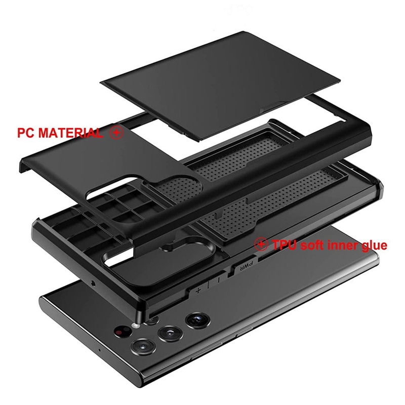 و یک لایه بیرونی سخت ومحکم از جنس PC که علاوه بر تقویت مقاومت و ایمنی قاب یک جیب بیرونی برای نگهداری از دو کارت بانکی را نیز فراهم می کند.