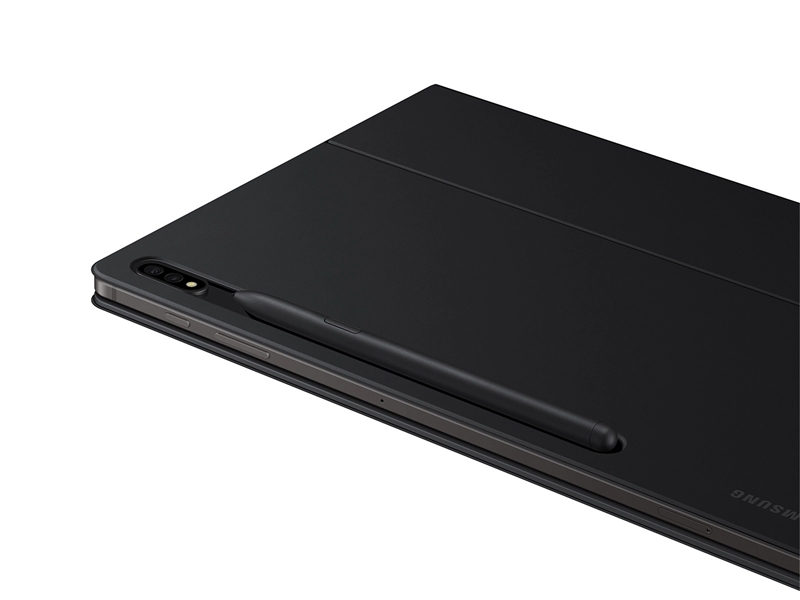قاب تب S8+ سامسونگ هیچ کدام از درگاه ها را مسدود نمیکند و حتی محل شارژ S Pen را هم به خوبی حفظ کرده است. شما میتوانید به راحتی قلم را در محل مخصوص قرار دهید تا سر جایش چفت شده و در عین حال شارژ هم بشود.